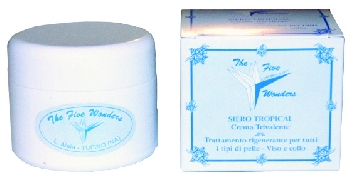 Cod.118 Siero Tropical - Azione Trivalente (100 ml.) Trattamento rigenerante per tutti i tipi di pelle viso e collo. Rassodante viso notte-giorno. Questo prodotto nel campo della cosmesi è una novità nel senso assoluto. La particolare composizione ed applicazione in fasi diverse(giorno e notte) ne fanno un prodotto completo e di sicura efficacia. Nella fase giorno intervengono quelle componenti (elastina, balsamo di tolù, tintura di benzoino, mirra ed incenso) che dispongono la pelle a ricevere un'altra serie di elementi (burro di karité,estratto di luppolo, ginseng, olio di germe di grano,macerato di pappa reale) che costituiscono la seconda fase del trattamento. In breve queste sostanze svolgono un'azione impinguente, perché disponendosi sottocute, procurano quel riempimento necessario per eliminare le rughe. |