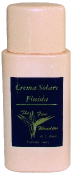 Cod. 187 Crema solare fluida (200 ml.) E? una miscela di ingredienti (olio di cocco, bergamotto, burro di karitè, germe di grano) che ne fanno una delle creme abbronzanti più complete e delicate per qualsiasi tipo di pelle. Modo d?uso: Per ottenere il massimo effetto si consigliano più applicazioni durante l?esposizione |